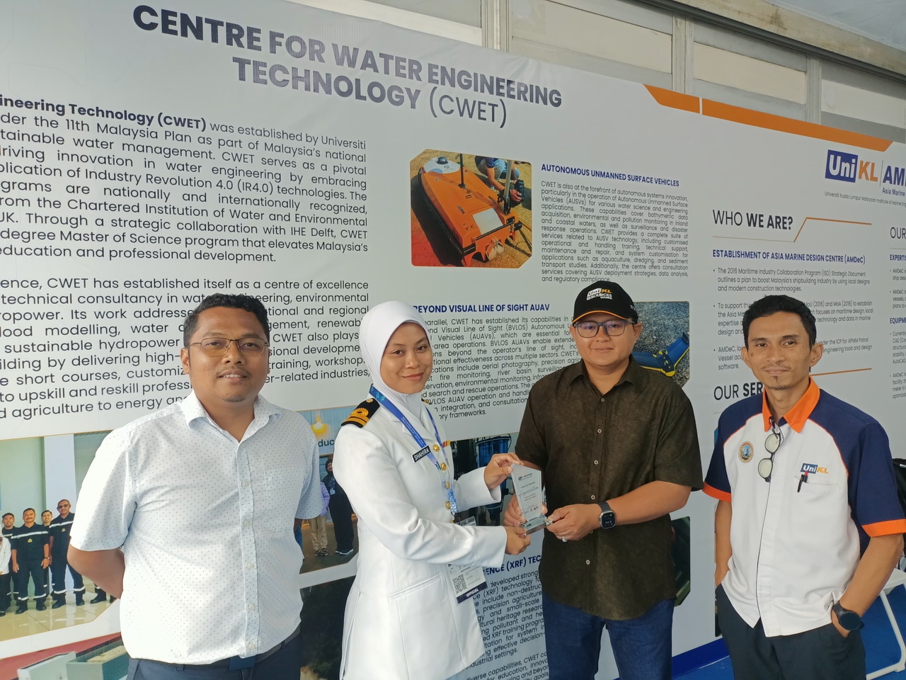 Our participation extended beyond technical demonstrations. In collaboration with other UniKL entities — including the Centre for Advancement & Continuing Education (ACE), Asian Marine Design Centre (AMDec), the Malaysian Institute of Marine Engineering Technology (MIMET), and UniKL Resources Sdn Bhd — we presented a comprehensive picture of UniKL’s integrated capabilities in maritime engineering. Visitors had the opportunity to learn about UniKL’s research infrastructure such as the wave tank facility at MIMET, and explore how academic and industry collaborations are shaping future marine technologies.