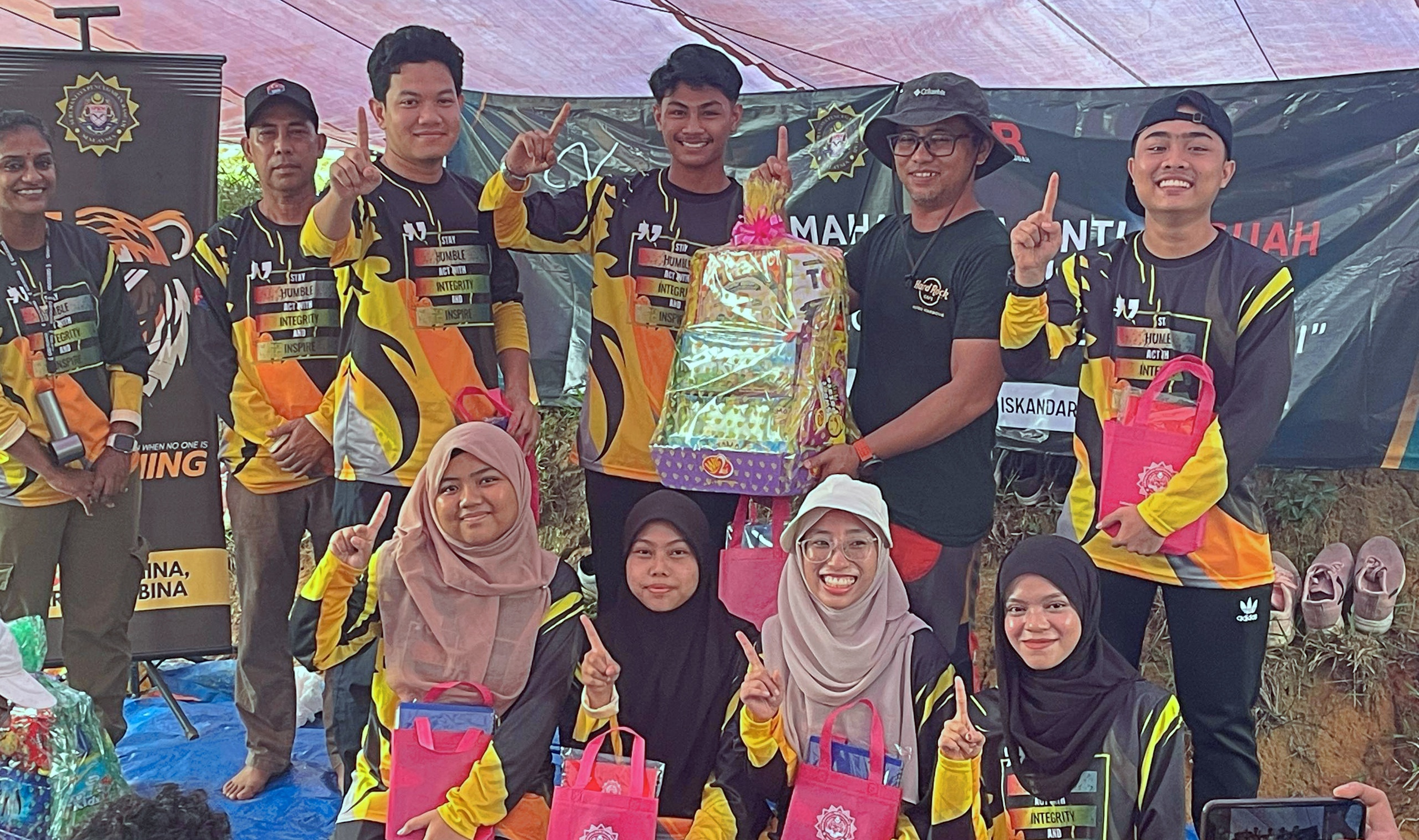 Students engaged in challenging and interactive activities such as the Explorace Integriti, night walks, survival skill training, and a detailed corruption-awareness session conducted by MACC officers.